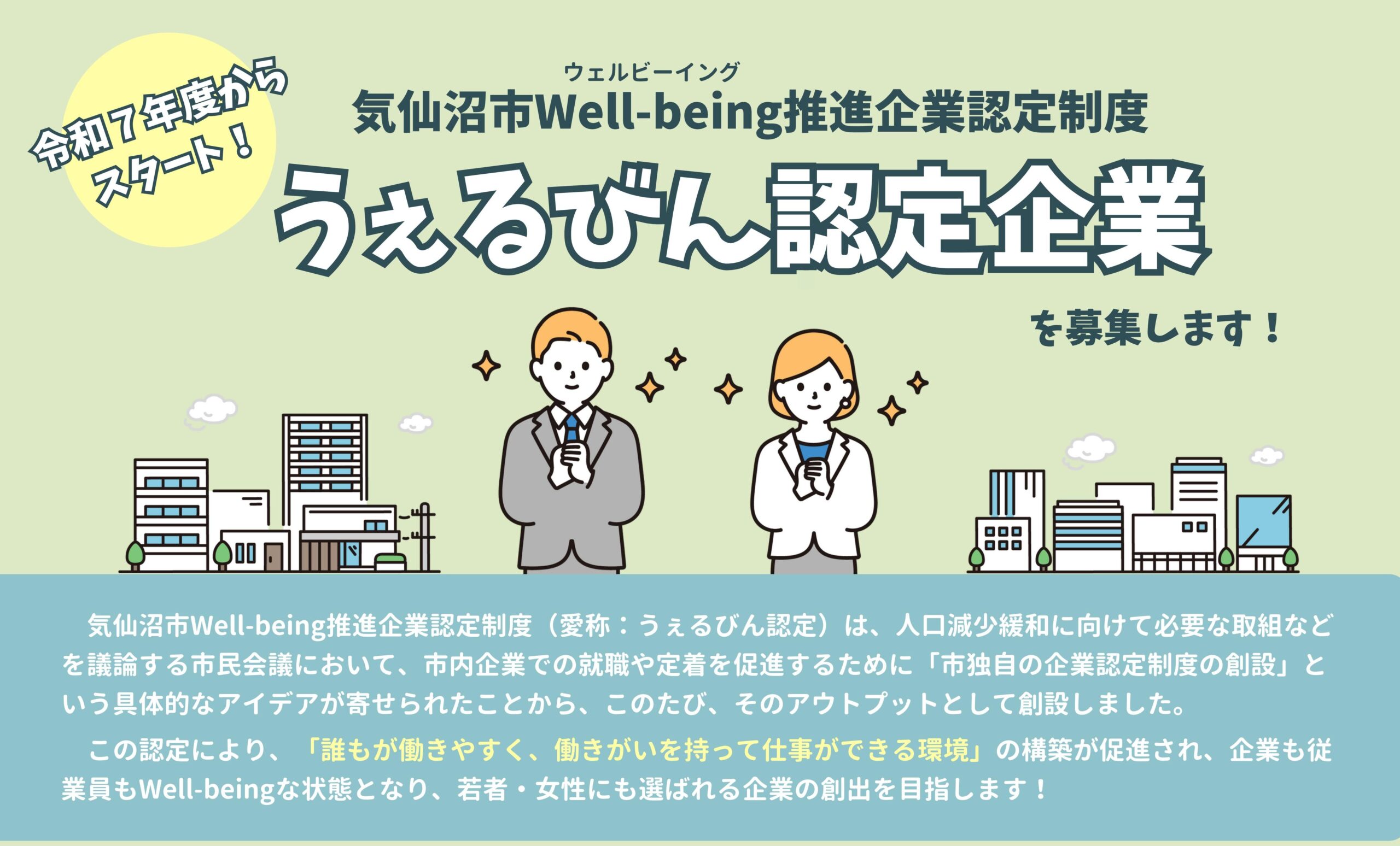 うぇるびん認定の申請にあたり、「様式第2号 気仙沼市Well-being推進企業認定評価項目チェックシート」